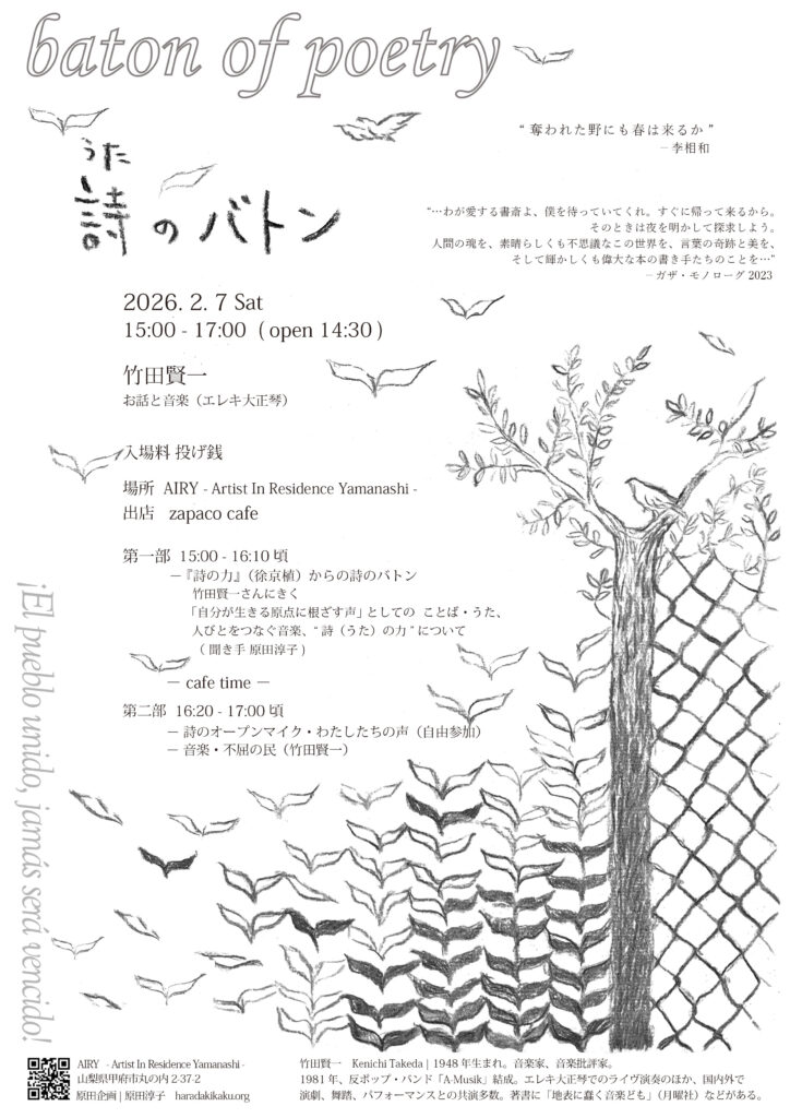 竹田賢一さんにきく「自分が生きる原点に根ざす声」としての ことば・うた、人びとをつなぐ音楽、”詩(うた)の力”について(聞き手 原田淳子)